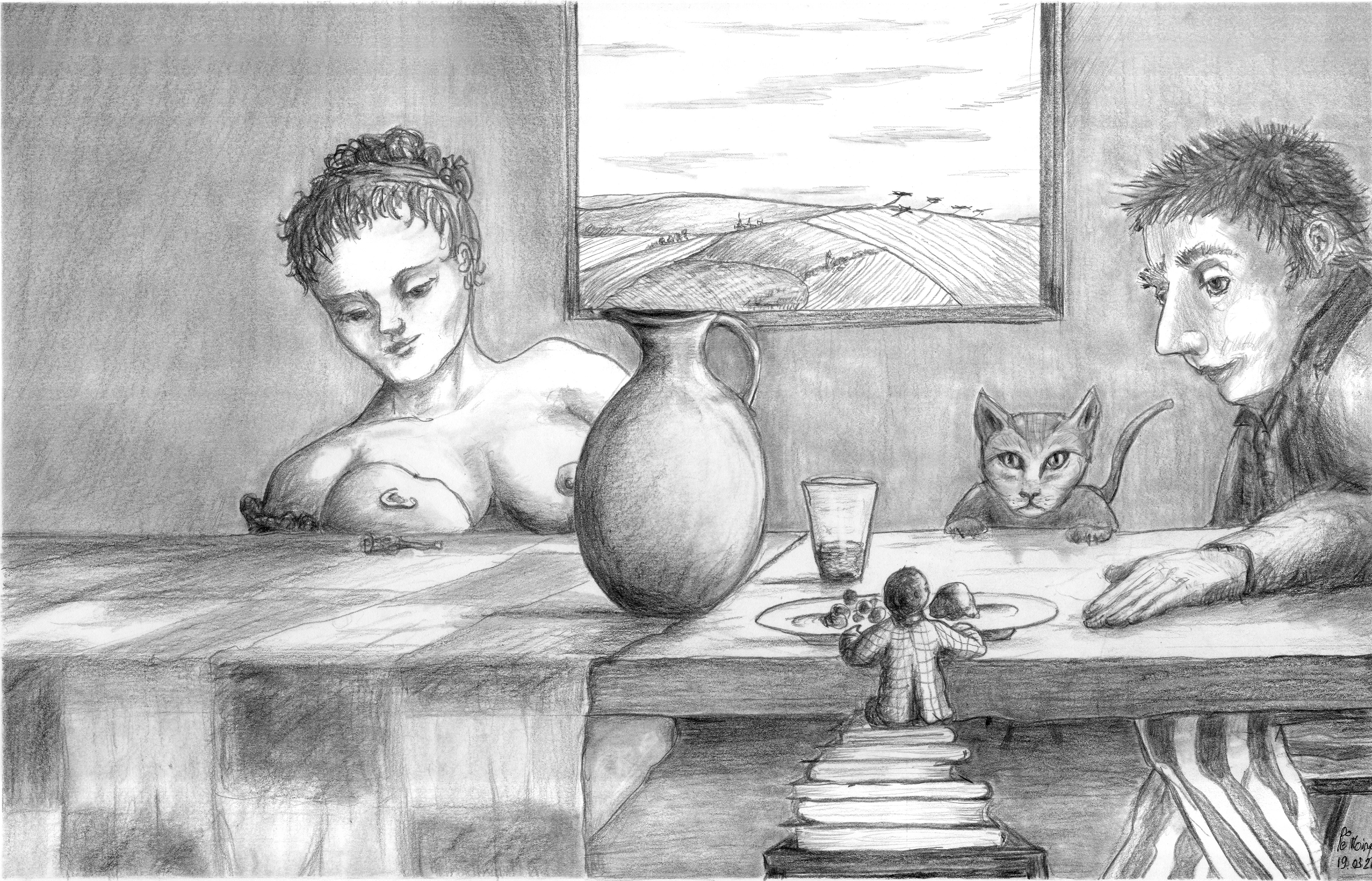 Jonathan SWIFT- Extrait des Voyages de Gulliver, voyage à Brobdingnag, 1721 - A3 - Crayon graphite sur papier.
